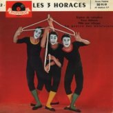 Le visage fardé de blanc, les trois Horaces portaient un costume noir moulant, ainsi que des chaussettes assorties de couleurs criardes (voir la photo en mortaise). Le trio s’amusait tantôt à faire des déplacements symétriques et des jeux de mains, s’amuser avec des accessoires souvent originaux et, plus particulièrement, mettre à l’instar de Marcel Marceau les expressions de leur visage à l’avant-plan. Repéré par Jacques Canetti, les trois Horaces deviennent des habitués du Trois Baudets (cela va de paire!) et sortent deux 45 tours en 1955. L’année suivante, ils enregistrent une goualante du grand Boris Vian lui-même, la Java martienne.